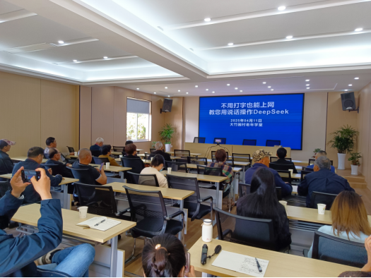 活動現場,寬敞明亮的教室里坐滿了求知若渴的老人。大屏幕上,“不用打字也能上網,教您用說話操作DeepSeek”幾個大字格外醒目。鮑樂青老師正以通俗易懂的方式,向老人們介紹DeepSeek這一智能工具:“它就像一位隨時在線的‘智能助手’,能幫助大家輕松解決生活中的各種問題”。