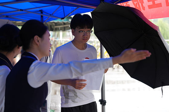 當天,遇到暴雨天,學校各部門通合作全力做好面試的服務保障工作。提前排查安全隱患,設置避雨和休息區域,提供雨衣、熱水等必要物品,維護交通秩序協助考生出行,盡量為考生提供安全、舒適的面試環境。23航空專業和22電商中高班的學長學姐們積極參與志愿服務,他們分布在各點位,熱心地為考生和家長提供資料收集、禮儀引導、問詢等服務。
