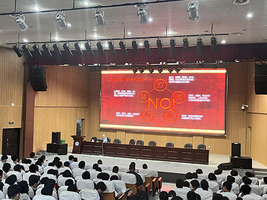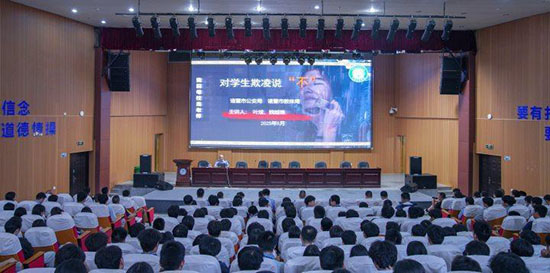 會(huì)議結(jié)束后,宣講員、公安局法制大隊(duì)副大隊(duì)長(zhǎng)葉斌在諸暨技師學(xué)院報(bào)告廳就校園防欺凌作示范講課。全體參會(huì)人員及技師學(xué)院200余名同學(xué)聆聽(tīng)了宣講。