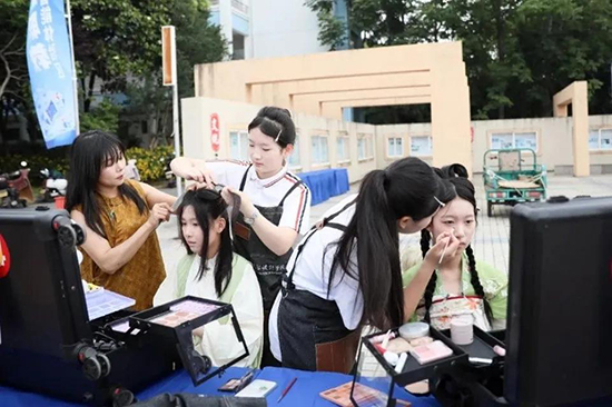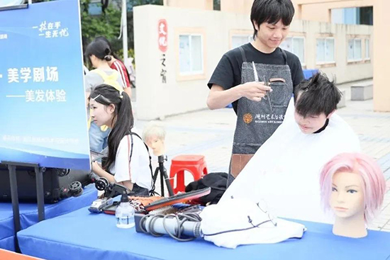 美發、化妝、美甲等生活服務體驗項目人氣頗高,纏花、絨花、泥塑等非遺手工體驗區也座無虛席,文創集市的16個攤位更是人氣爆棚,學生手工制品受到廣泛歡迎,展現了職教學子的創新創業能力。
