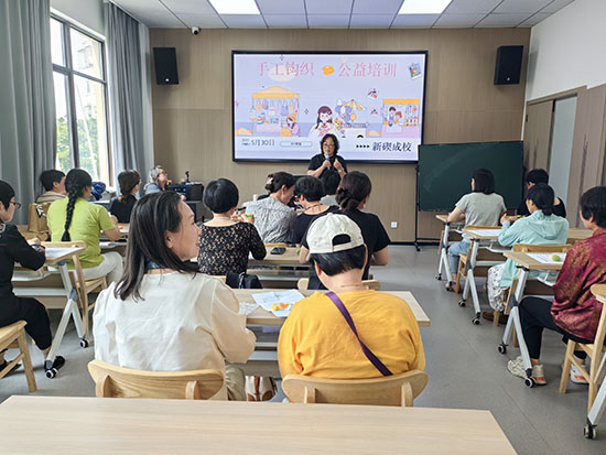 活動當(dāng)日,新碶成校的教室熱鬧非凡。桌上整齊陳列著五彩斑斕的毛線、精致的鉤針,為這場手工盛宴做好準(zhǔn)備。