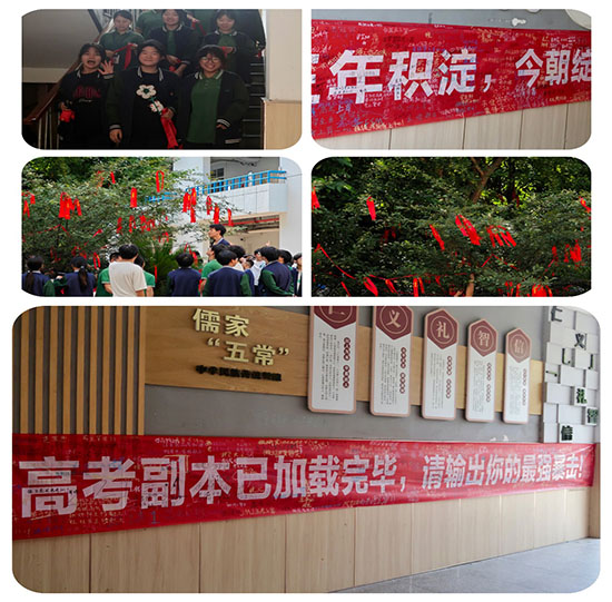 教學(xué)樓旁的許愿樹下,一條條鮮紅的許愿帶隨風(fēng)飄揚。同學(xué)們認(rèn)真寫下心愿:“考上理想院校”“不負(fù)青春,勇往直前”……隨風(fēng)飄揚的許愿帶承載著青春的夢想,也凝聚著堅定的信念。隨后,全體師生在“三年積淀,今朝綻放;筆鋒所向,皆是榮光。”的橫幅上鄭重簽名,表達(dá)沖刺高考的決心。