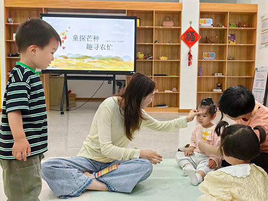活動現場,老師用充滿童趣的故事,向孩子們娓娓道來芒種“忙種”背后的農耕意義,以及仲夏時節獨特的物候特征,巧妙引出芒種時節活躍的小動物們,瞬間點燃了孩子們的好奇心。