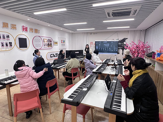 課程選材兼顧經典性與趣味性:《茉莉花》融入民族音樂元素,《歡樂頌》傳遞普世溫情,《鈴兒響叮當》則呼應節慶氛圍。教學中,老師將樂理知識與生活場景結合——用“五線譜像樓梯”比喻音符高低,以“手指如跳房子”講解指法規律,讓抽象知識變得生動易懂。值得關注的是,學員群體呈現“跨代際”特點:既有結伴報名的年輕朋友,也有退休后重拾興趣的銀發族。30歲的小江與62歲的鄰居錢叔在課間常交流練琴心得,“沒想到和叔叔成了‘琴友’,社區活動讓鄰里關系更近了。”課程結尾,不同年齡層的學員合奏《茉莉花》,琴聲與掌聲交織,成為社區文化活動的溫暖注腳。