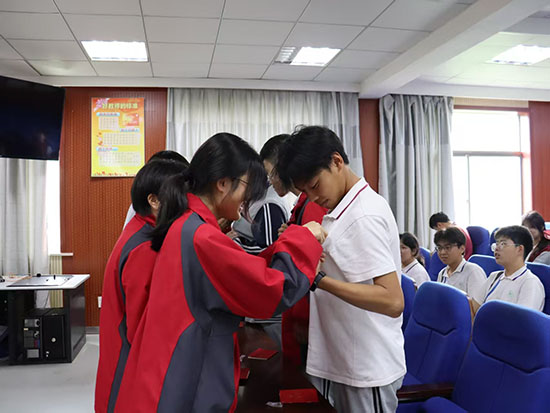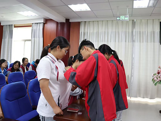 老團員向新團員代表頒發(fā)團員證、佩戴團徽。鮮紅的團徽閃耀在新團員的左胸,象征著責(zé)任與使命,時刻提醒他們以團員標(biāo)準(zhǔn)嚴(yán)格要求自己,在校園生活中踐行青春誓言,成為新時代青年的榜樣力量。