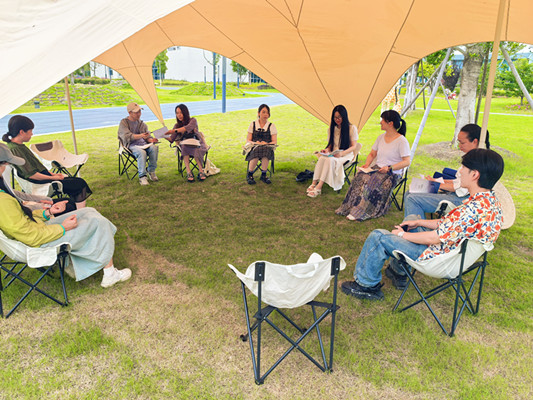 成員們圍坐于草坪上,依次輪流發言,分享自己精心挑選之書的閱讀心得,交流閱讀體驗?;蛏羁?、或詼諧、或感人肺腑的分享,讓現場氣氛逐漸熱烈。從《哲學家的最后一課》中對生命與死亡的深度思考,到《自卑與超越》里打破常規的自卑認知;從《什么都能拿來畫》的創意無限,到《正面管教》對教育理念的全新探索;從《人類群星閃耀時》的歷史輝煌,到《長安的荔枝》的故事精巧;從《蘇東坡傳》的人生豁達,到《烏合之眾》的群體心理剖析;從《等一朵花開》的治愈禪意,到《天才在左瘋子在右》的思維沖擊;從《精進》的時間管理智慧,到《兄弟》的人生深度刻畫;從《白夜行》的人性深淵凝視,到《教育的初心》與《給教師的建議》對教育本質的堅守,每一本書都是一扇窗,帶領大家走向不同的精神世界,拓寬思維邊界。