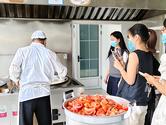 5月16日上午,諸暨市楓橋鎮(zhèn)中心幼兒園家長膳食委員會成員到校了解食堂工作。