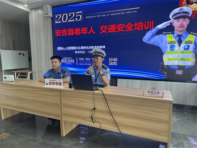 6月6日,安吉縣社區教育學院遞鋪分院南北莊村老年學堂內氣氛熱烈,一場兼具實用性與趣味性的交通安全、天然氣基本安全使用培訓在此展開。此次培訓特別邀請到安吉縣交通警察大隊喻壁峰警官擔任主講,來自南北莊村的40多位村民齊聚一堂,認真學習安全知識。