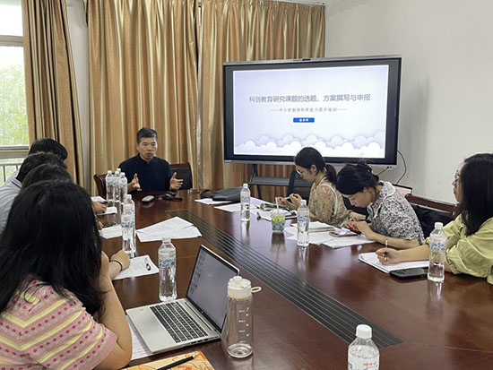 活動(dòng)邀請(qǐng)正高級(jí)教師潘榮輝開(kāi)展《科創(chuàng)教育研究課題的選題、方案撰寫(xiě)與申報(bào)》專(zhuān)題講座。潘老師從核心價(jià)值、開(kāi)發(fā)策略、方案撰寫(xiě)、課題實(shí)施等方面,結(jié)合典型案例進(jìn)行實(shí)操指導(dǎo)?;?dòng)環(huán)節(jié)中成員踴躍提問(wèn),潘老師逐一解答,為后續(xù)課題研究打下扎實(shí)基礎(chǔ)。