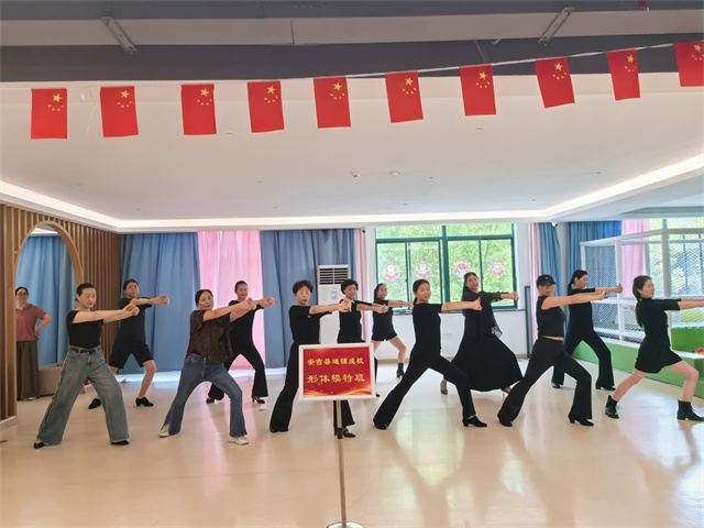 6月2日清晨,陽(yáng)光透過(guò)安吉縣社區(qū)教育學(xué)院遞鋪分院排練室的落地窗灑在木質(zhì)地板上,遞鋪成校形體模特隊(duì)的20余位學(xué)員身著統(tǒng)一訓(xùn)練服,已整齊列隊(duì)開(kāi)始熱身。這些學(xué)員來(lái)自遞鋪街道13個(gè)不同村鎮(zhèn)、社區(qū),年齡跨度從40歲到65歲,卻因?qū)γ赖墓餐非笙嗑塾诖恕?/p>