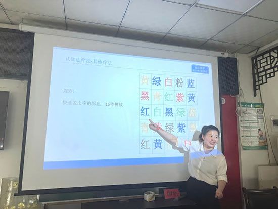 講座中,周愛盈以通俗易懂的語言,結(jié)合案例深入淺出地講解了認知癥的早期癥狀、預防措施及康復治療方法,強調(diào)“早發(fā)現(xiàn)、早干預”的重要性,并現(xiàn)場演示了居家康復訓練技巧。學員們認真聆聽、積極互動,學員吳文嫣表示:“講座不僅讓我們了解了認知癥,還學會了如何幫助家人科學應對,非常實用!”