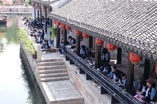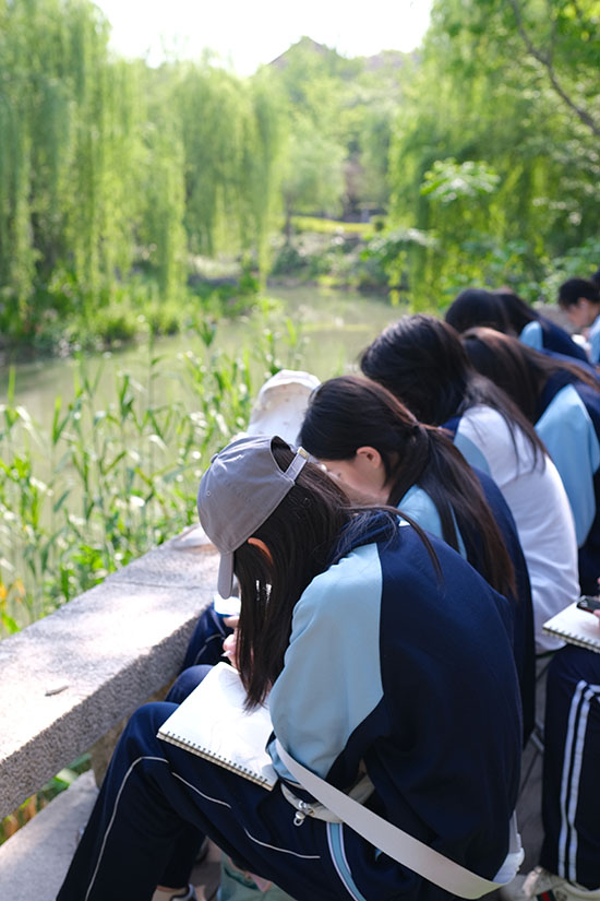 當南河頭的雨巷浮起氤氳,沈蕩鎮的苔痕漫過石階,蘆席匯的運河攬住暮色——這些流淌著詩意的片段,如今成為建筑藝術系學子的天然畫室。近日,嘉興市建筑工業學校校建筑藝術系組織24級全體學生及23藝術大專班開展校外寫生技能強化活動,本次寫生活動由建筑藝術系副主任侯暮云和潘建鋒帶隊,在專業教師的指導下和各班班主任的陪同下,一場畫筆與春日江南的細膩對話由此展開。