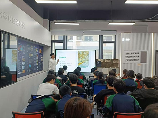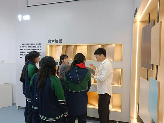 在數字材料展示中心,改變了傳統了建筑裝飾材料和構造課堂,教師結合樣本與多媒體互動屏講解材料的成分、用途、施工要點等知識,讓學生們在實踐中學習材料知識。學生們在展示區穿梭,通過觀察、觸摸、對比,直觀了解不同材料的性能、特點和質感。在這里,學生們獲取更多的設計靈感,也讓設計作品更具可行性和創新性。