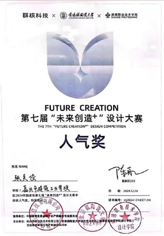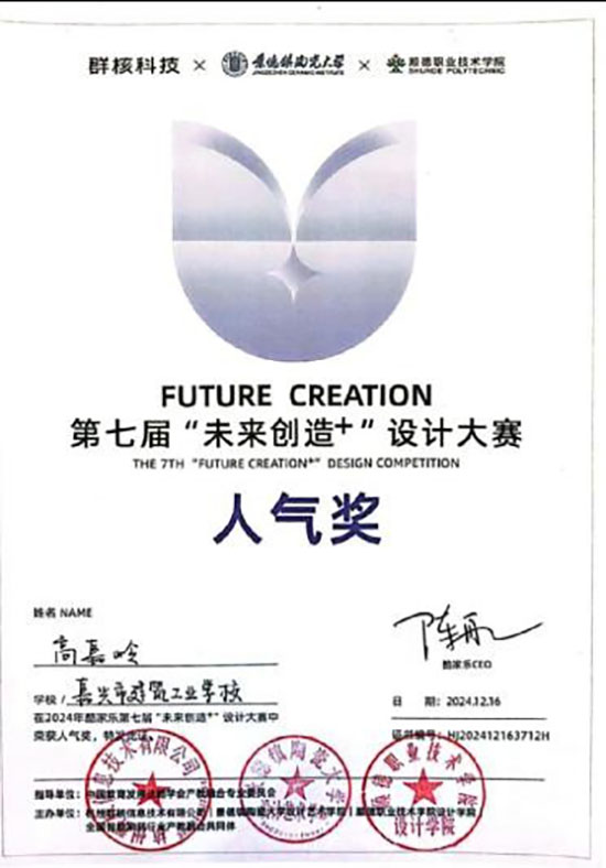 VR室內設計體驗館和裝飾施工虛擬仿真實訓室是建筑裝飾技術專業比賽的“備戰營”,也助力一批優秀學生在各類大賽上嶄露頭角。曾獲“未來設計師大賽”全國前五強、“未來創造+”大賽全國三十強和最佳人氣獎等。這里還是專業技能考證的孵化器,學生們將理論知識應用于數字化裝修技能,參加“1+X”學生技能等級證書,為他們的職業發展之路奠定堅實基礎。
