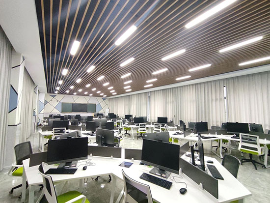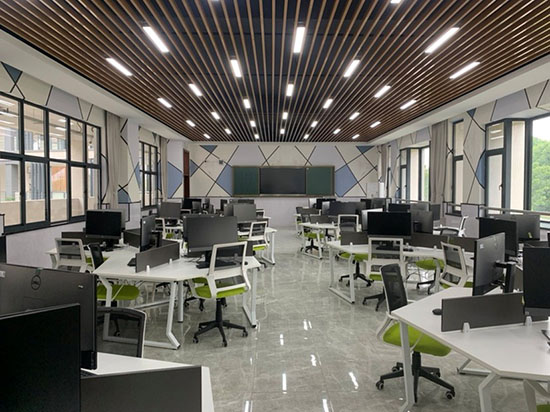 裝飾施工虛擬仿真實訓室是建筑裝飾產業數字化轉型背景下搭建的技能虛擬實踐平臺,它位于精進樓S202。這里擁有48臺高配置的電腦,整體采用組團化的空間布局形式,配有虛擬仿真實訓軟件,構建覆蓋"施工全周期、工藝全鏈條、崗位全角色"的數字化教學場景,通過虛擬技術手段,提升了整體教學效果,為他們未來的職業生涯打下堅實的基礎。