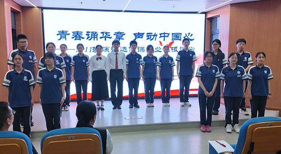 在這場學生主持、擔當主角的“青春誦華章,聲動中國心”匯報演出上,卻旦校長、聞建明副校長、班主任馬王貴老師以及選修課指導教師、浙江省朗誦協會會員、臨平區朗誦協會副主席、臨悅朗誦團團長、浙江省中小學生課文朗誦大賽高級指導教師何芳雨,欣然來到現場,見證同學們通過選修課浸潤錘煉而帶來的從內至外的改變。