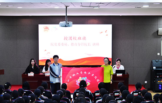 院黨委委員、德育分管院長唐瑛同志向本期團校學員代表——2412藝術設計班的溫志鵬同學授予了本期團校班旗?;照屡c旗幟的傳遞,寓意著組織信任的交付和奮進力量的凝聚,激勵學員們在班旗引領下團結協作、銳意進取。