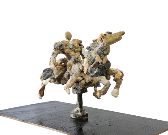 本作品以趙云單騎救主之英勇事跡為藍本,精心塑造出一尊將軍躍馬橫槍的雕塑。創作者深入研究人體結構與動態關系,精準捕捉趙云飛馳沙場的瞬間姿態。肌肉線條似山巒般雄渾,石頭棱角分明映照堅毅性格,紋理細膩暗藏深沉智慧。樸實無華的石材經過不規則重組,化為沖鋒姿態:盤龍石柱化作飛揚鬃毛,扁平青石勾勒健碩輪廓。戰馬奔騰的騰空瞬間被永恒定格,趙云回身橫槍的堅毅面容栩栩如生。粗糲質感中流動著剛健力量,石頭的質樸與英雄氣概相得益彰,完美詮釋了常山趙子龍殺出重圍的英雄氣概與矢志不渝的赤膽忠誠,讓千載之下的觀者猶聞金戈鐵馬,盡覽不朽軍魂。(陳麗敏 陳泮瑩)