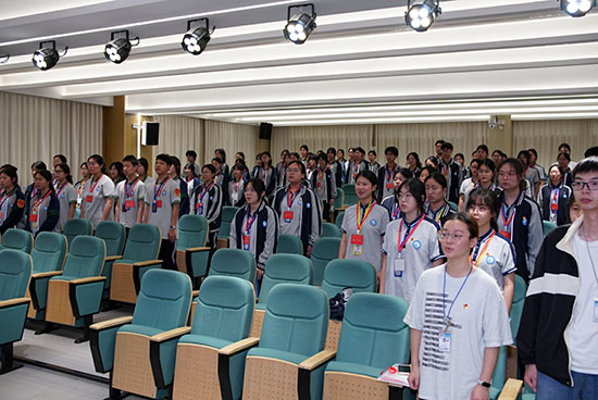 團歌奏響,團旗高揚,青春匯聚一堂。6月11日中午,在莊嚴的國歌聲中,共青團海寧衛(wèi)生學(xué)校第19屆團員代表大會于學(xué)術(shù)報告廳隆重開幕。88名團員代表、8名教師代表及8名主席團成員肩負使命,共赴這場凝聚青春力量的盛會。