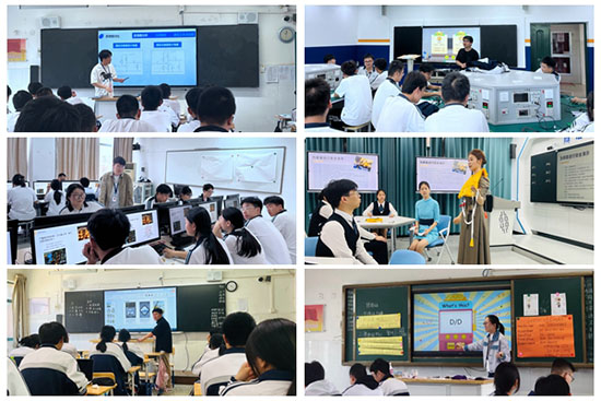 青年教師課堂風采展示,彭代婧航空服務專業《客艙安全演示—救生衣的使用》;莊鋒杰電子電工專業《分壓式偏置放大電路》;單柯電子電工專業《基爾霍夫第二定律》;董志凱電子商務專業《農產品銷售logo設計》;王哲能影視影像專業,《畢業設計紀錄片后期制作指導》;趙俊風國際商務專業《交易磋商——接受》。課后,指導教師聽評課反饋。