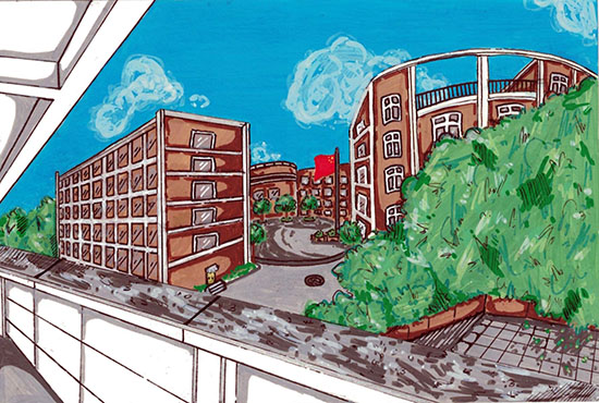 本次大賽鼓勵學生通過不同藝術形式展現校園風采。參賽作品形式多樣,包括電腦繪圖、攝影、手繪插畫等。經過一個多月的征集和評選,評委組從80余件作品中評選出一、二、三等獎及優秀獎。獲獎作品風格各異,有的以校園地圖展現空間布局之美,有的以光影攝影捕捉校園美景,還有的通過創意插畫賦予建筑獨特的藝術魅力,這些作品充分展現了同學們的審美素養和創新能力。