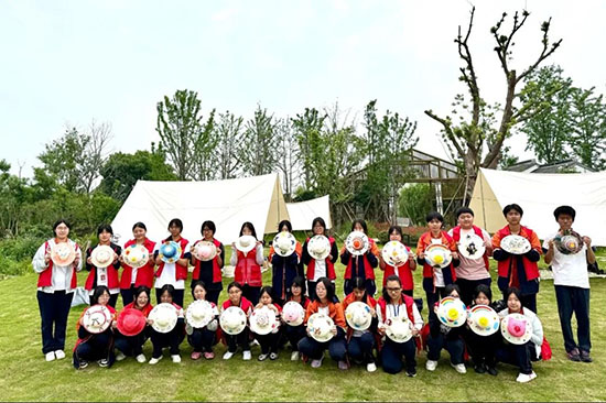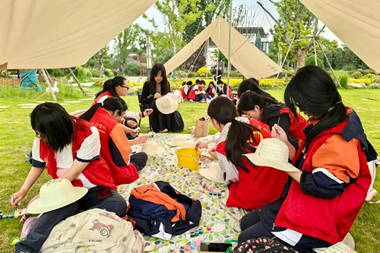 隨后,同學們在草帽DIY活動中揮灑創意。大家分組協作,以畫筆為媒,將樸素草帽變為色彩斑斕的個性畫布。藍天白云、奇花異草、抽象圖案躍然帽上,歡聲笑語中洋溢著創作的喜悅與合作的默契。