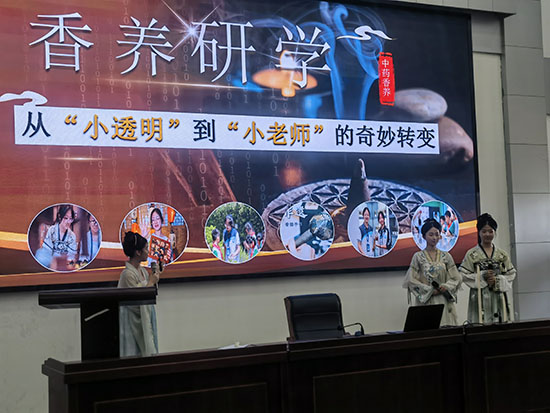 學(xué)校作為醫(yī)護(hù)類專門化學(xué)校,擁有省級重點藥學(xué)專業(yè)和濃厚的中醫(yī)藥文化氛圍。香養(yǎng)文化中的核心元素——精微的香材辨識、嚴(yán)謹(jǐn)?shù)南惴脚湮?、專注的用香技?mdash;—與藥學(xué)專業(yè)高度關(guān)聯(lián),同時也是療愈身心的重要手段。學(xué)校將中草藥的在地化優(yōu)勢注入德育、心理健康等方面,不斷創(chuàng)新育人手段、豐富育人內(nèi)涵,扎實落實大德育育人。