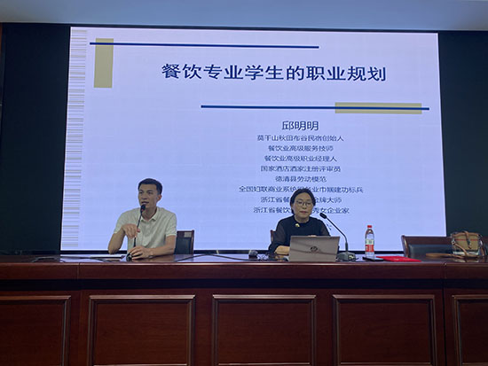 活動周創(chuàng)新引入“家長導(dǎo)師”資源。莫干山秋田布谷民宿創(chuàng)始人、德清縣勞動模范、浙江省餐飲行業(yè)優(yōu)秀女企業(yè)家邱明明女士,為酒店、烹飪、園林專業(yè)的學(xué)生帶來了融合行業(yè)前沿與匠心精神的生動一課。醫(yī)生家長則走進課堂,講授夏季傳染病預(yù)防知識,實現(xiàn)專業(yè)醫(yī)學(xué)與校園健康教育的完美融合。獄警家長為學(xué)生開展法律講座,了解法律常識、校園欺凌以及未成年人犯罪現(xiàn)狀。行業(yè)精英與專業(yè)人才走進校園,為職教學(xué)子打開了更廣闊的視野。