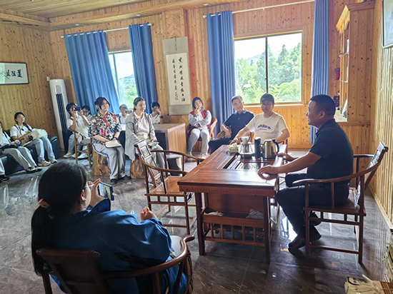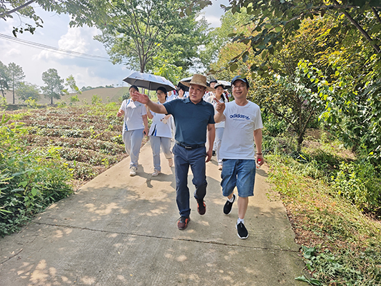 在沃野生態農業,師生們聽取了公司負責人吳愛民(農校校友)的創業簡介,并實地參觀了茶場生產場地和加工車間,太秋甜柿種植基地等,還現場聽取了王兆成博士關于薄殼山核桃栽培技術研發的介紹。