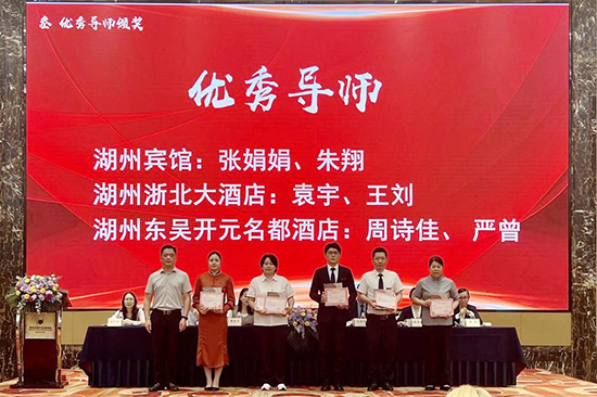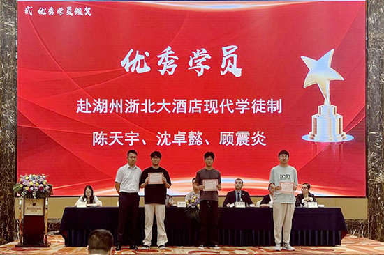 湖州賓館、浙北大酒店、湖州東吳開元名都酒店領(lǐng)導(dǎo)為十位優(yōu)秀學(xué)員頒發(fā)榮譽(yù)證書。費(fèi)永軍副校長為6位優(yōu)秀企業(yè)導(dǎo)師頒發(fā)榮譽(yù)證書;優(yōu)秀學(xué)員代表2219班汪義超同學(xué)作學(xué)徒分享;學(xué)校綜合專業(yè)部副部長孫葉玲,就本次現(xiàn)代學(xué)徒制的教學(xué)實(shí)施與考核評(píng)估作專業(yè)總結(jié)。