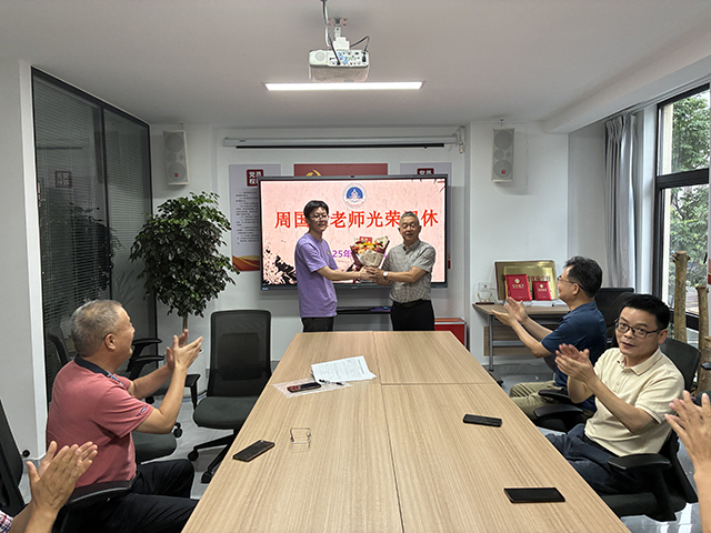 6月27日下午,安吉社區(qū)教育學(xué)院孝豐分院的小會(huì)議室內(nèi),流淌著濃濃的溫情與深深的敬意。分院全體同仁齊聚一堂,為耕耘教壇數(shù)十載、深受愛戴的周國太老師舉行了一場簡樸而莊重的光榮退休儀式。小小的空間里,滿載著對(duì)一位教育工作者職業(yè)生涯的禮贊與不舍。