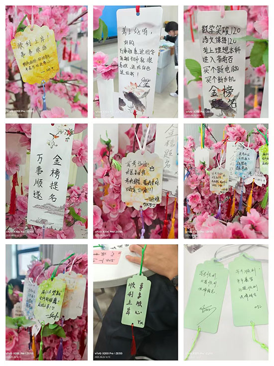 最后,同學(xué)們在精美的書簽上鄭重寫下自己的高考目標(biāo)和人生愿望。有的同學(xué)畫上了理想大學(xué)的校徽,有的寫下了激勵自己的座右銘,還有的記錄了父母溫暖的寄語。當(dāng)一張張承載著夢想的書簽被掛上心愿樹時(shí),仿佛為每個(gè)夢想都裝上了隱形翅膀。