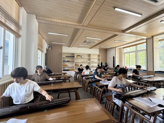 學員們從零基礎開始,逐步掌握了基本指法與琴曲演奏。最后一堂課上,學員們從容演奏《先翁操》《陽關三疊》《梅花三弄》等經典曲目,指尖在七弦間游走,流淌出千年古韻。