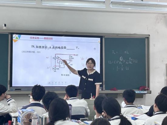 宮亞楠老師上的是一堂復習課,她針對《集成運算放大電路》進行了專題復習,通過精心設計的課堂互動和實例分析,將復雜的運放知識拆解成清晰的知識脈絡。帶領學生梳理運放核心規律,手把手教大家破解典型考題。幫助學生鞏固了集成運放的核心概念,提升了解題技巧,為即將到來的高三做好了充分準備。