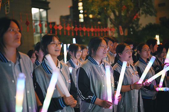 當沈琪校長與高三學生賀湘君領唱《海闊天空》時,全體同學齊聲高歌,嘹亮的歌聲回蕩在校園上空,那是青春的吶喊,是夢想的宣言!