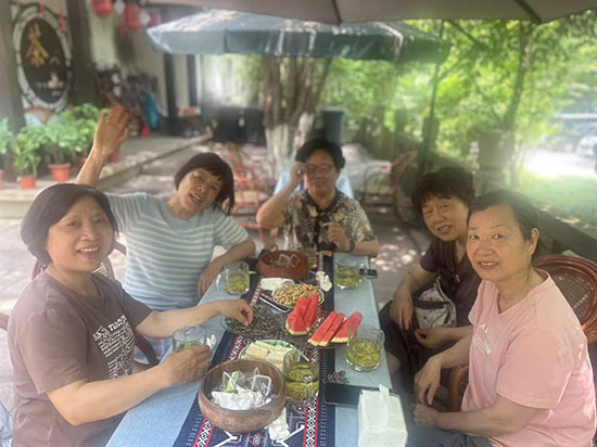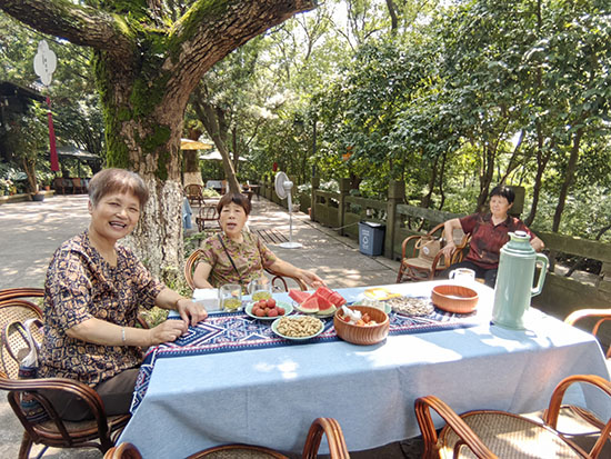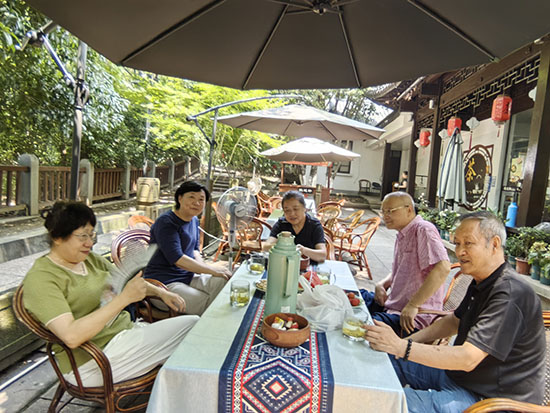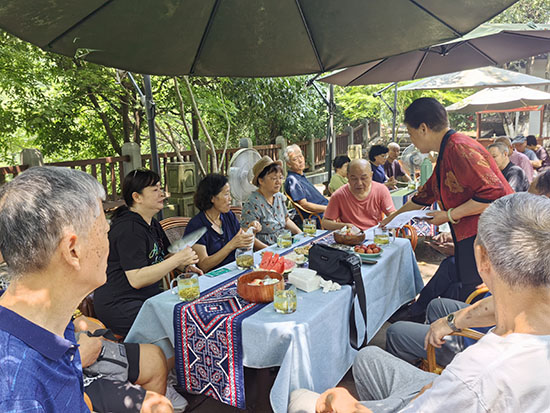 上午10時,退休教職工們沿著綠樹掩映的路徑前行,一路欣賞平山的秀美景色,最終抵達半山腰的鶴過軒休閑茶室。在這里,大家圍坐一堂,手捧熱氣騰騰的香茗,暢談生活瑣事,齊聲歌唱,共同度過了一段悠閑而愜意的快樂茶時光。