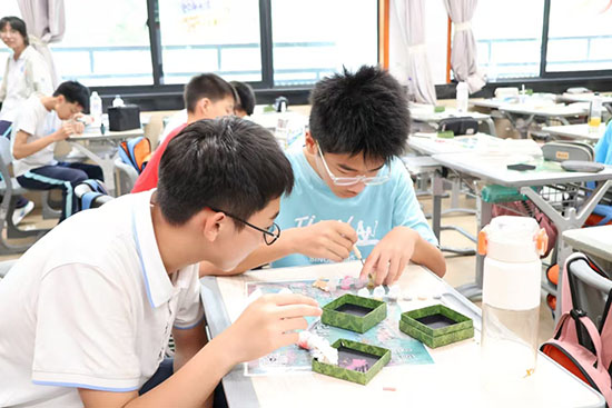 活動當天,課堂現場氣氛熱烈。AI課上,學生通過互動式學習,探索智能科技的奧秘,感受數字時代的創新力量;非遺課堂中,劉旭強老師的拓印課程則通過創新設計,讓學生在古樸技藝中觸摸傳統文化的溫度;包鄆老師的禪繞畫課程以細膩的教學引導,激發學生藝術靈感。學生們在沉浸式體驗中,既鍛煉了動手能力,更增強了對傳統文化的認同感與自豪感。