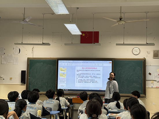 趙雨成老師精準對接學生日常情緒管理困惑,通過創設真實的情景模擬、剖析典型的情緒案例,引導學生科學認識情緒的本質、類型及其影響。他的課堂強調互動體驗與實踐應用,提供了如深呼吸法、換位思考等一系列實用性強、操作性高的情緒調節技巧,引導學生在輕松、支持的氛圍中學習與情緒共處,掌握主動權,努力成長為心態陽光、情緒穩定的少年。