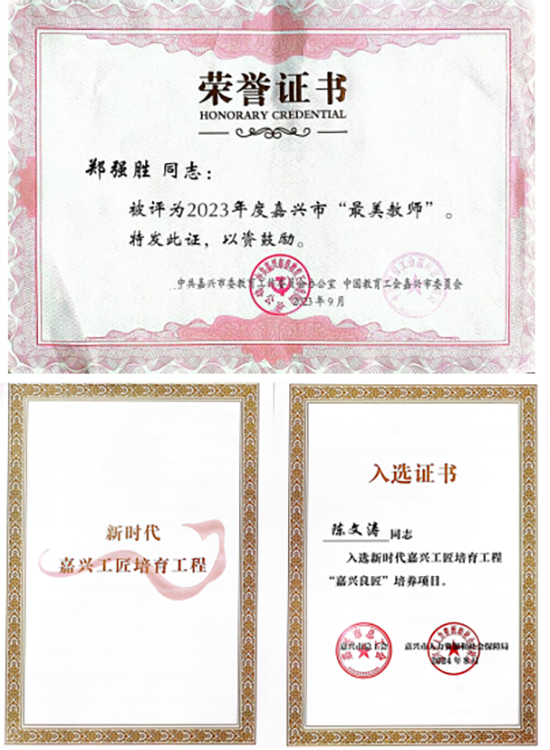 榮譽殿堂:培育“嘉興巧匠”1人、“嘉興良匠”2人、“技術能手”1人;