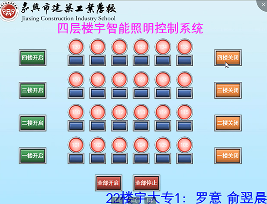 在工程管理系的雙創工坊,精耕實踐澆灌了一朵朵創意之花。工程造價專業的學生從宿舍樓入手,從土建到安裝、從手算到電算,從BIM建模再到精準計價,實現了將所學知識應用于具體項目的實戰演練。建筑智能化設備安裝與運維專業的作品《四層樓宇智能照明控制系統》,通過組態軟件對一幢四層的樓宇進行全方面的照明系統監測與控制,可單房間控制、可樓層統一控制、可整樓統一控制,真實展現學生專業技能。