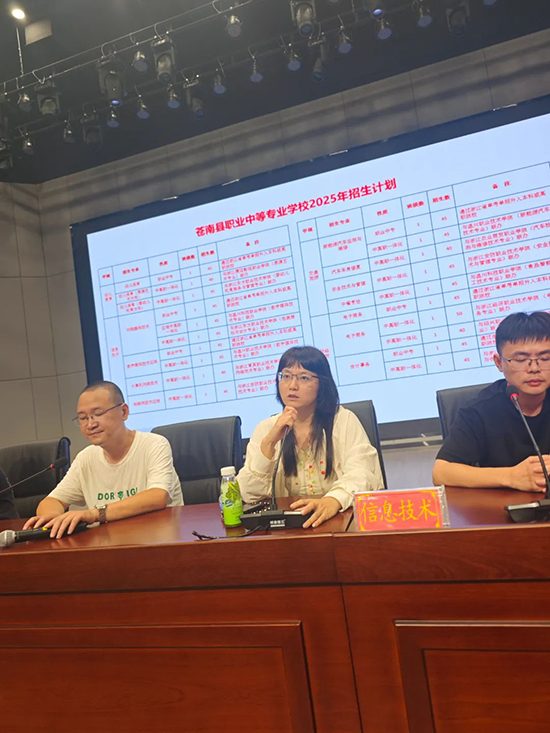 2025年7月1日下午2:30,蒼南職業中等專業學校報告廳內座無虛席,一場以“精準填報·職引未來”為主題的招生咨詢宣講會如期舉行。來自全縣的近800名初中畢業生及家長齊聚一堂,圍繞中考志愿填報策略、跨縣域招生政策及專業發展前景展開深度交流。會議由社會服務處林月教主任主持,通過數據解讀、案例分析和現場答疑,為考生和家長搭建起一座通往理想職業教育的橋梁。