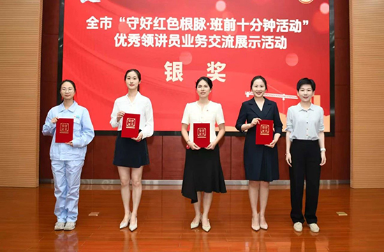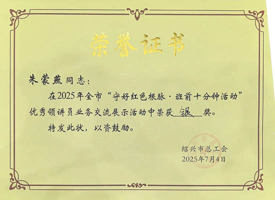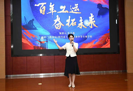 7月4日,紹興市總工會組織開展的“守好紅色根脈·班前十分鐘活動”優秀領講員業務交流展示活動現場,來自全市各單位的22位優秀領講員同臺競技。上虞區職業中專朱蒙燕老師以《百年工運,奮拓未來》為題,用三個生動的創新實踐案例,展現了虞城學子將紅色基因轉化為技術革新的精彩故事,喜獲銀獎。