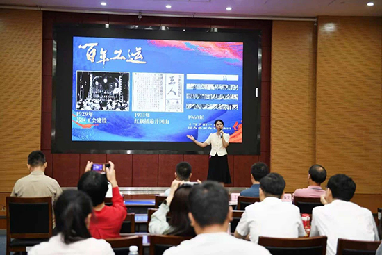 “從智能制造到綠色建造,從低碳餐飲到社區服務,新時代虞城職中學子正在用創新傳承紅色基因。”朱蒙燕老師的領講引發了強烈共鳴。講述的案例生動展現了工運精神在新時代的創造性轉化,彰顯了職業教育在人才培養中的獨特價值。