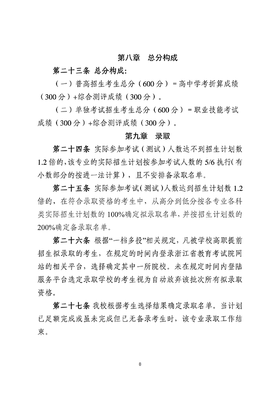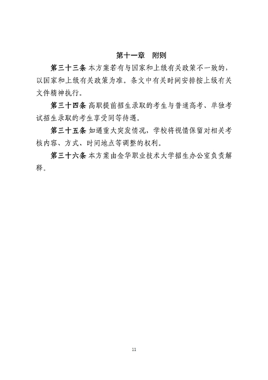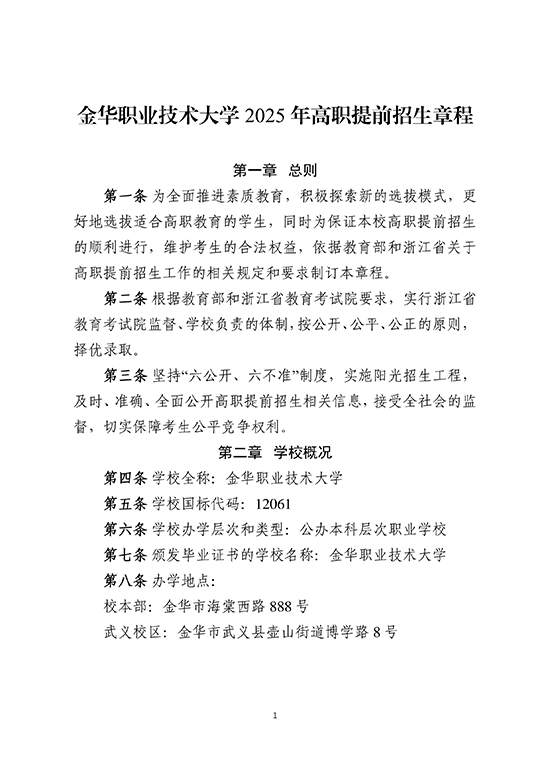 金華職業(yè)技術(shù)大學(xué)2025年高職提前招生章程