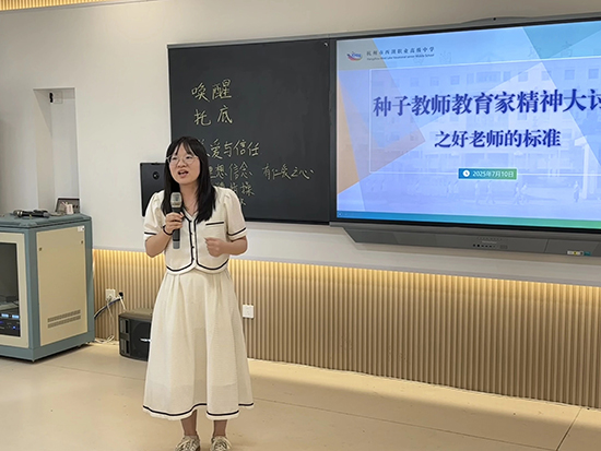 7月10日下午,一場以“教育家精神大討論之好老師的標準”為主題的種子教師交流活動在杭州市西湖職業高級中學團輔室熱烈展開。本次活動由戰波汲老師主持,通過小組分享、專家點評、校領導寄語等形式,共同探討新時代好老師的標準與成長路徑,為教師專業發展注入新思考。
