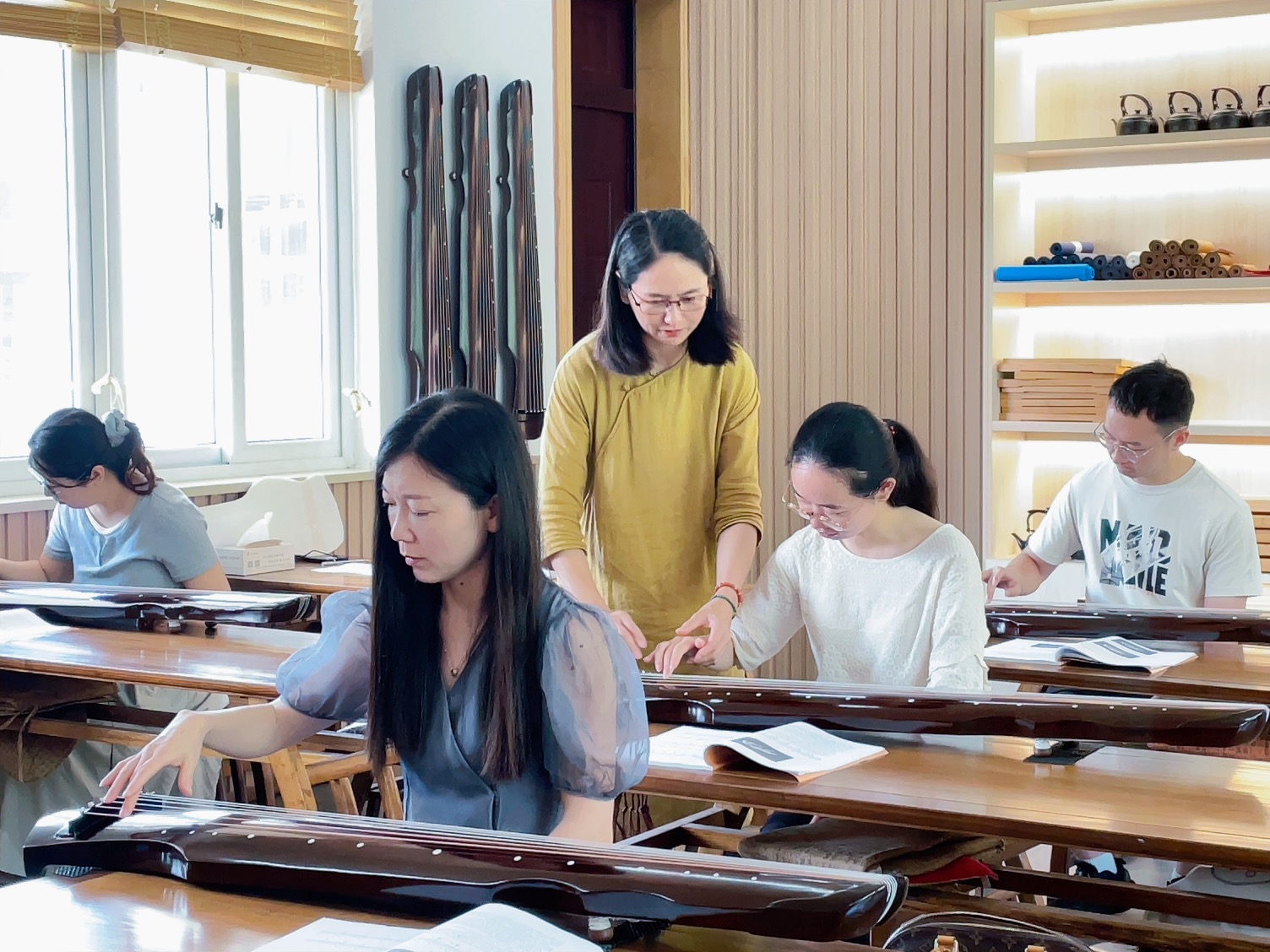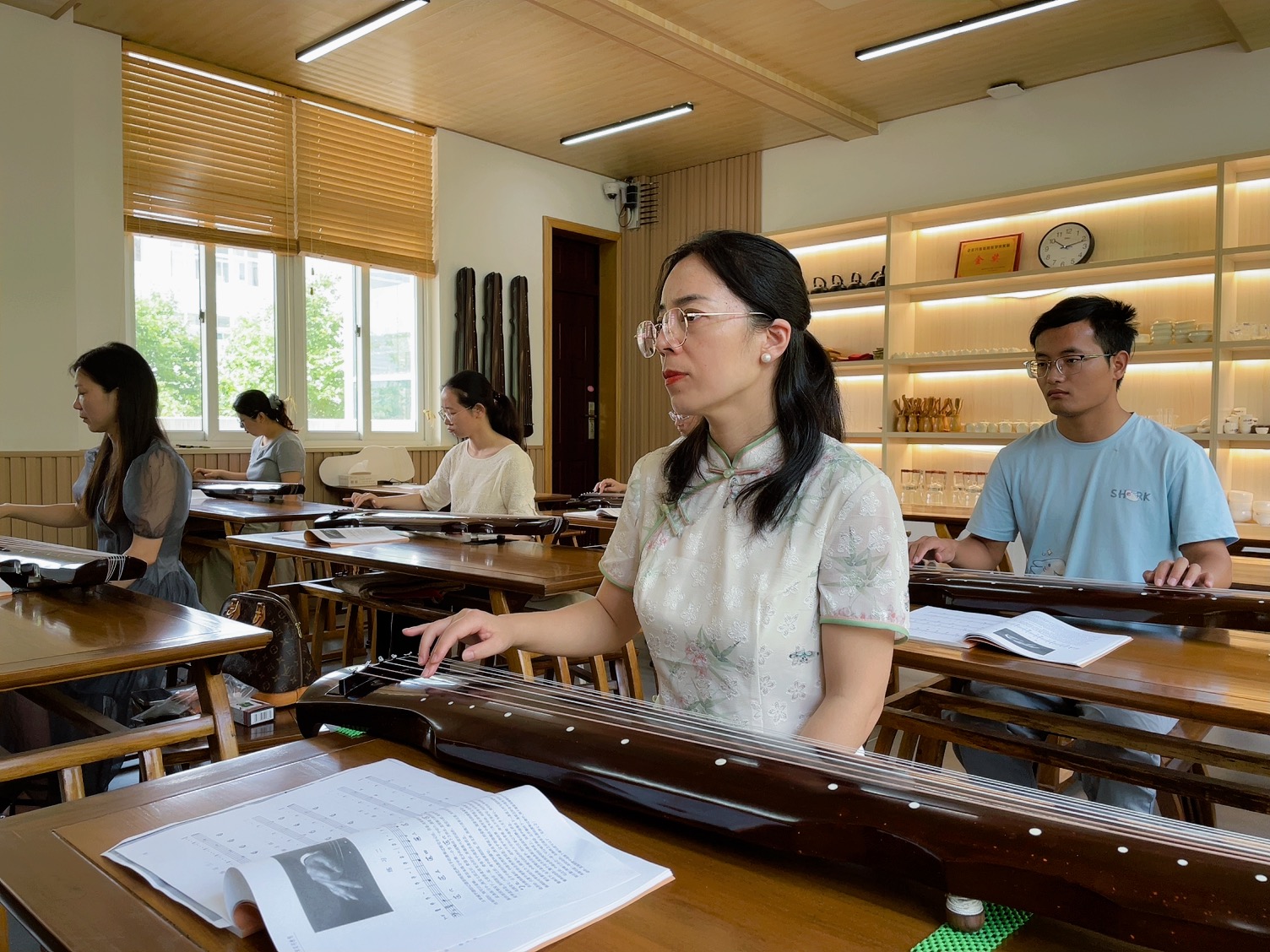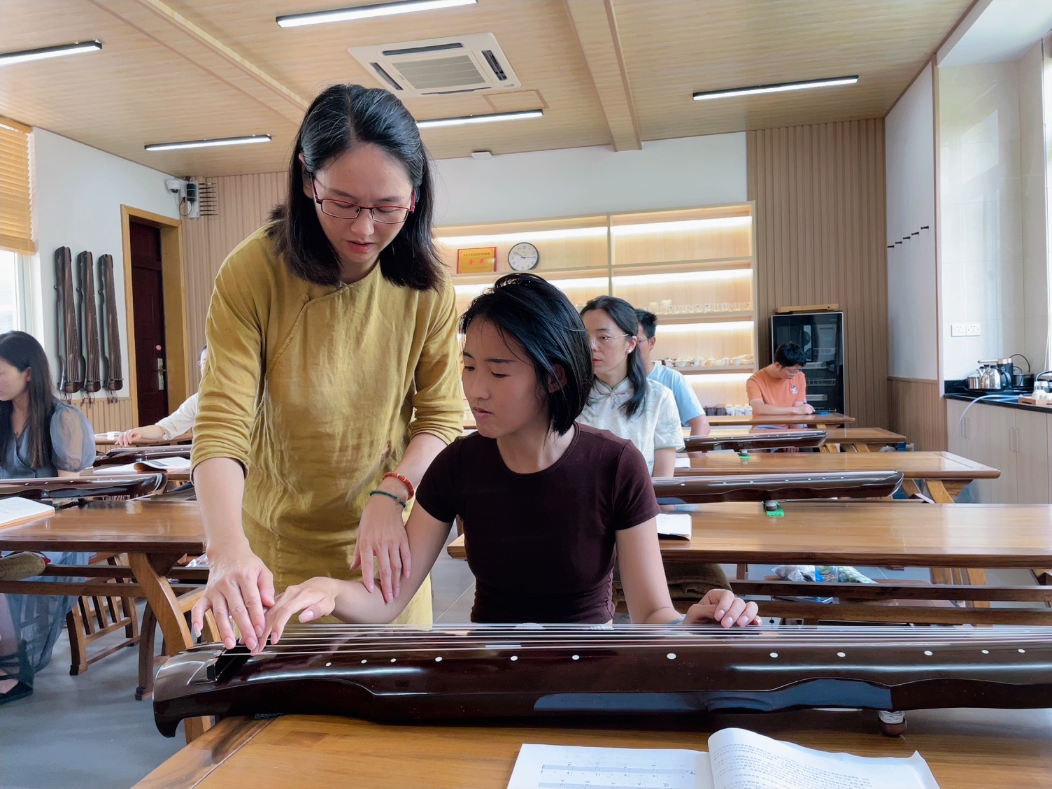 在教學過程中,管老師不僅注重理論知識的傳授,更強調實踐操作的重要性。她鼓勵學員們大膽嘗試,親自體驗古琴的演奏,讓學員們在實踐中感受古琴藝術的魅力。課程現場,學員們熱情高漲,積極參與,與管老師互動頻繁,教學氛圍十分融洽。