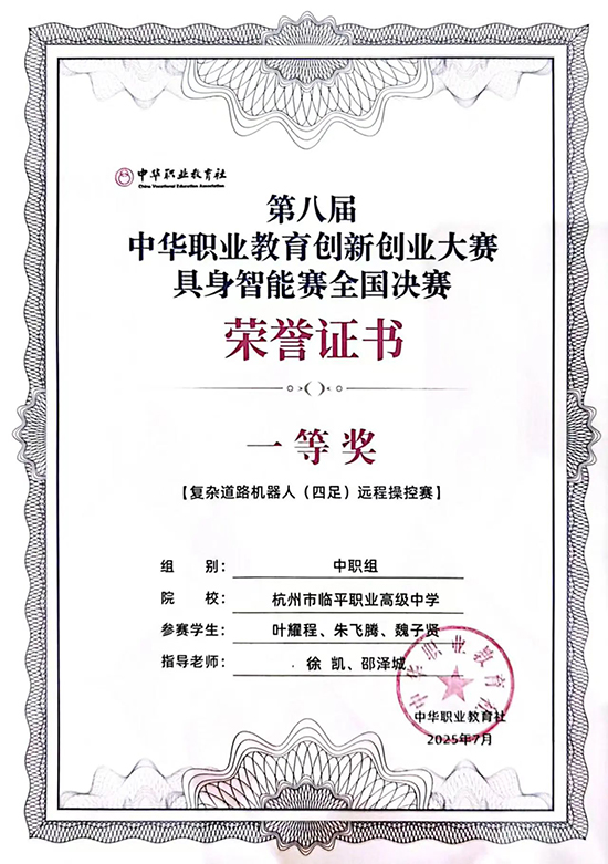 教育最動人的部分,永遠藏在那些看似笨拙的重復里。回想備賽歷程,獲獎證書反而成了最輕的收獲。在團隊與機械電子設備并肩作戰的日子里,我們共同種下了更重要的種子:關于專注的修行,關于團隊的信任,關于在平凡領域追求卓越的勇氣。這些終將成為同學們未來職業生涯中最堅實的底色。(杭州市臨平職業高級中學)