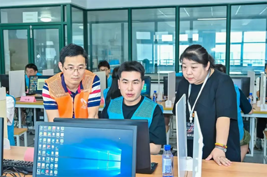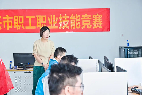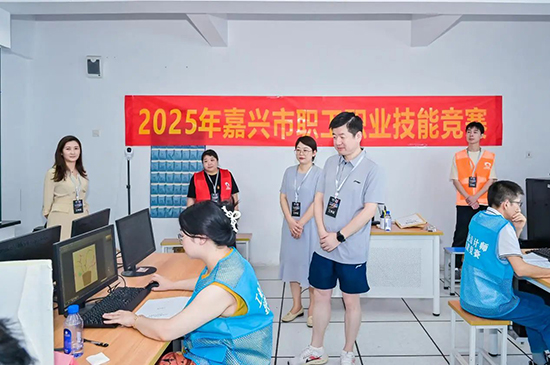 嘉興市總工會勞動與經(jīng)濟工作部部長沈忠橋、嘉興技師學院校長錢琴梅、副校長謝默親臨賽場指導工作。
