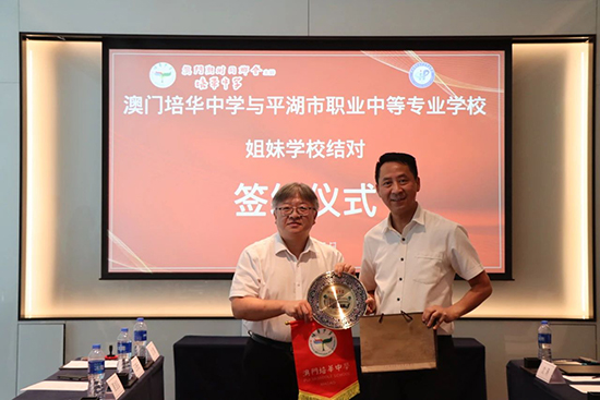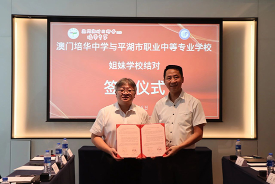 2025年7月16日,在平湖市委常委、市委統戰部長沈志林的帶領下,市委統戰部副部長、市僑辦主任、市僑聯主席夏潔弘,市教育局黨委書記、局長徐立,黨委委員、總督學王獻,市僑聯專職副主席汪瀟云與平湖市當湖高級中學、平湖市職業中等專業學校主要負責人赴廣東珠海,參加浙江省平湖市兩所高中與澳門培華中學締結姐妹學校簽約儀式。