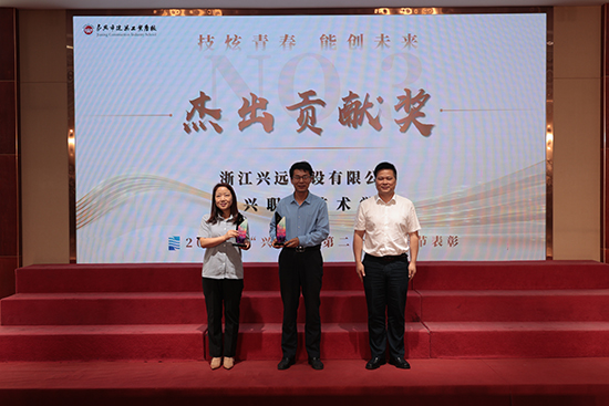 李志文校長向谷偉院長及王巧平主任頒發了“杰出貢獻獎”,以感謝嘉興職業技術學院、浙江興遠建設有限公司與學校在人才培養、師資隊伍建設等多個領域合作中所作出的卓越貢獻。